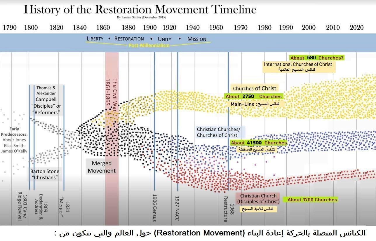 يحب البعض ذكر اجتماع النهضة المشترك للكنائس المختلفة في عام 1801 في كين ريدج، كنتاكي (Cane Ridge, Kentucky) بالولايات المتحدة الأمريكية كالشرار التي بدأ الحركة، “حركة الاستعادة أو الترميم / حركة الرجوع الى الأصل – Restoration Movement“.