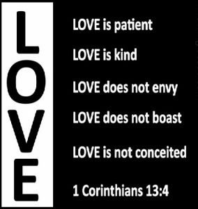 4 الْمَحَبَّةُ تَتَأَنَّى وَتَرْفُقُ. الْمَحَبَّةُ لاَ تَحْسِدُ. الْمَحَبَّةُ لاَ تَتَفَاخَرُ، وَلاَ تَنْتَفِخُ، 5 وَلاَ تُقَبِّحُ، وَلاَ تَطْلُبُ مَا لِنَفْسِهَا، وَلاَ تَحْتَدُّ، وَلاَ تَظُنُّ السُّؤَ، 6 وَلاَ تَفْرَحُ بِالإِثْمِ بَلْ تَفْرَحُ بِالْحَقِّ، 7 وَتَحْتَمِلُ كُلَّ شَيْءٍ، وَتُصَدِّقُ كُلَّ شَيْءٍ، وَتَرْجُو كُلَّ شَيْءٍ، وَتَصْبِرُ عَلَى كُلِّ شَيْءٍ.