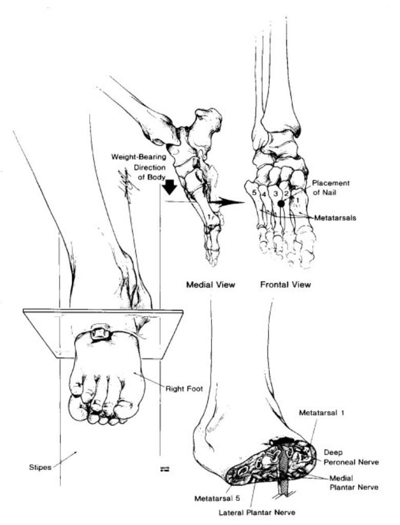في نهاية الأمر نفيد أن الظهر أصبح على شكل شرائح لحمية ممزقة غارقة بالدماء يقوم رئيس الجند المسؤول عن السجين بتقدير أن قد أوشك على الموت وبهذا يوقف الضرب .